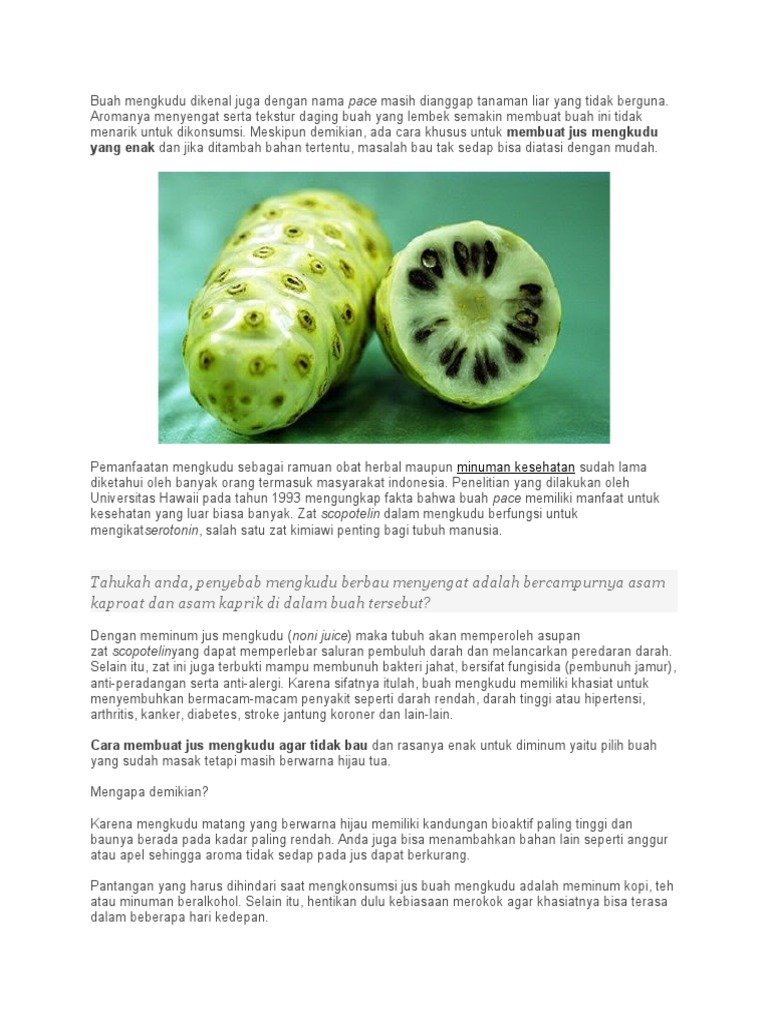 Mengkudu adalah salah satu buah-buahan yang memiliki kandungan antioksidan tingkat tinggi. Di mana zat inilah yang membuatnya powerful. Report Proposal Manfaat Jus Buah Mengkudu Please fill this form we will try to respond as soon as possible.